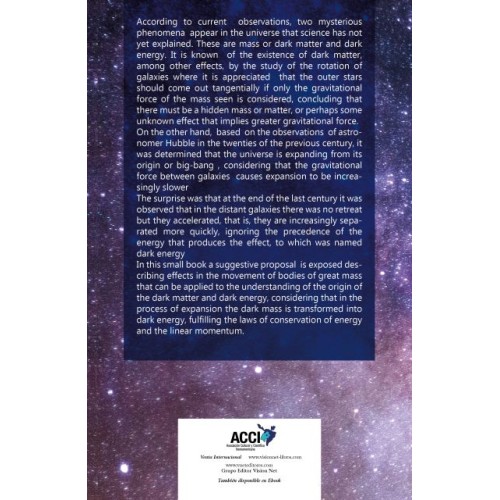 According to current observations, two mysterious phenomena appear in the universe that science has not yet explained. These are mass or dark matter and dark energy. It is known of the existence of dark matter, among other effects, by the study of the rotation of galaxies where it is appreciated that the outer stars should come out tangentially if only the gravitational force of the mass seen is considered, concluding that there must be a hidden mass or matter, or perhaps some unknown effect that implies greater gravitational force.