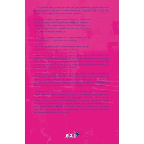 Entre los temas objeto de estudio en este libro se destaca la exposición de investigaciones que constatan nuevos roles y una nueva realidad en el entorno educativo, o aquellas que describen nuevos métodos y estrategias para abordar el conocimiento. También se observa búsqueda de horizontes integradores y multidisciplinares así como un afán observador y crítico en el que se revisan contenidos curriculares. Se examina además, la incidencia de las nuevas herramientas ?las TIC-, y las nuevas imbricaciones del hecho educativo haciendo una comparación de sistemas evaluadores y de propuestas de evaluación en el aula.